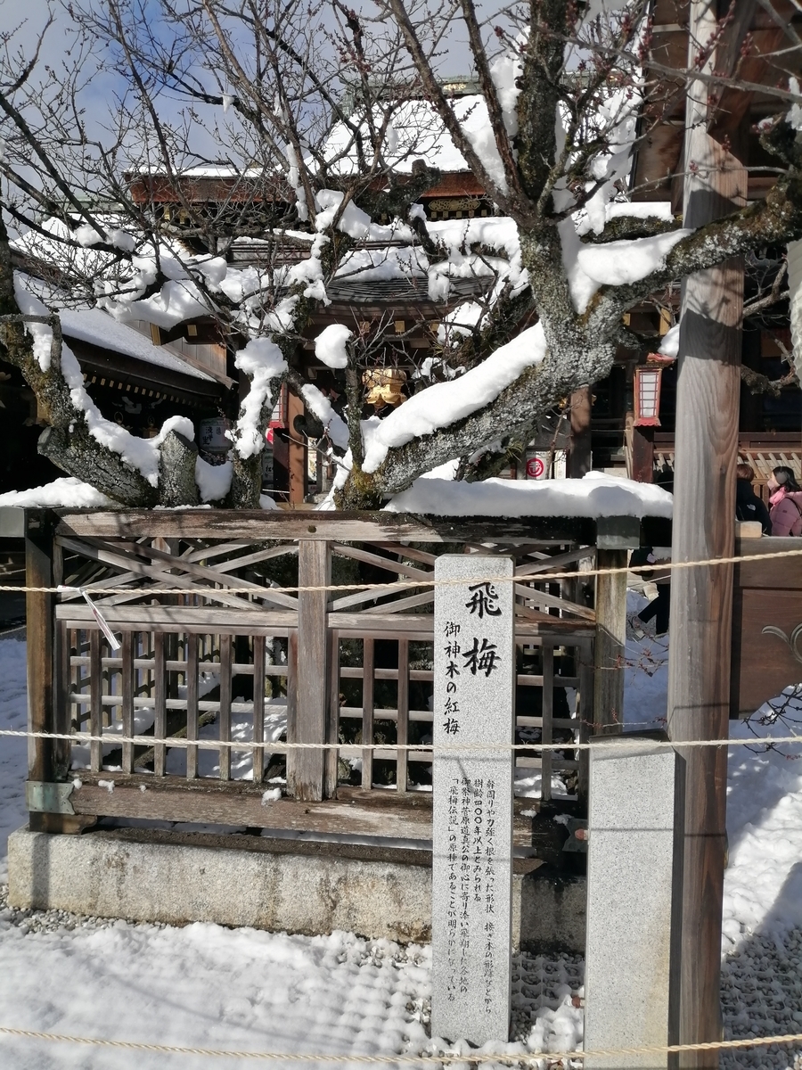 道真に愛された梅で、九州に左遷された道真を追って飛んでいったとか。