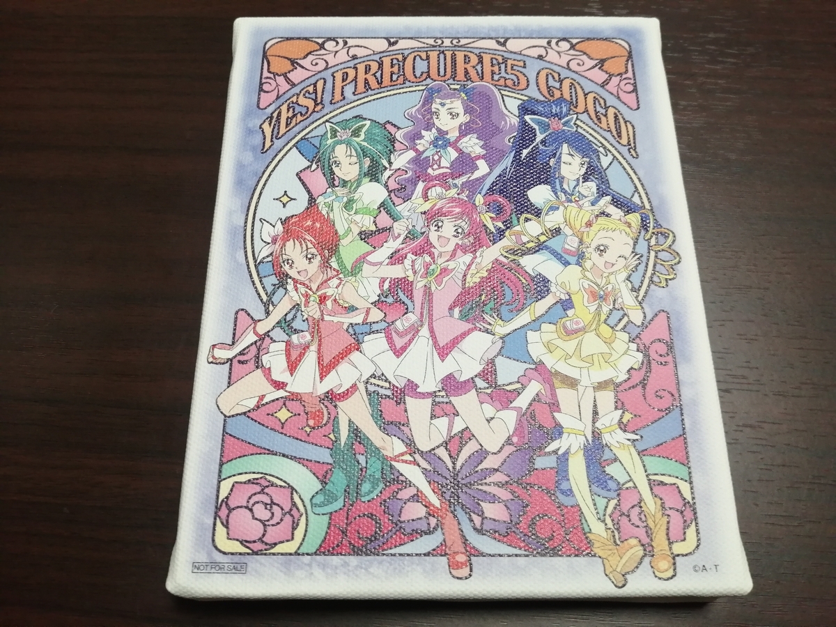 デザインは『Yes!プリキュア5GoGo!』の6人が描かれている物でキャンバスボードらしいきれいな描き下ろし(?)になっています。サイズも18㎝×14㎝のF0号でしっかりとした存在感!