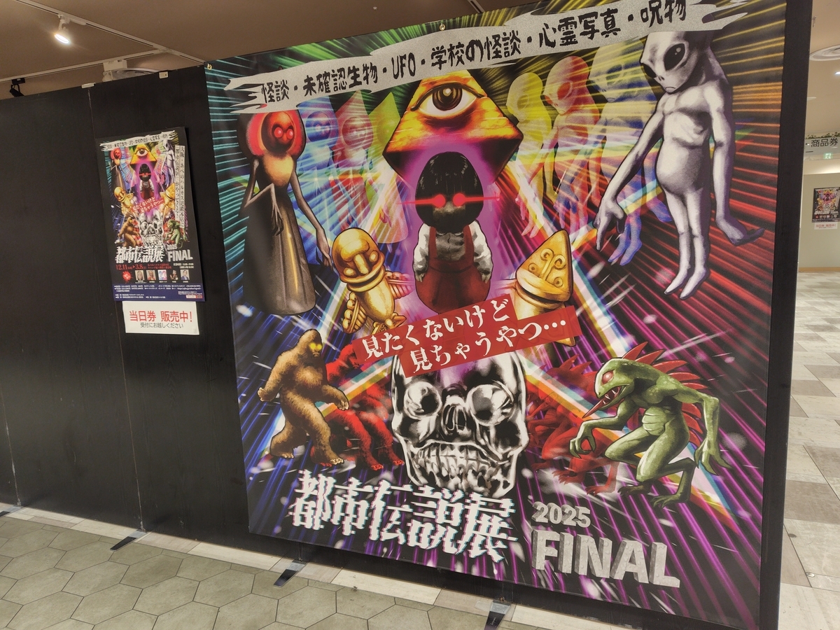 怪談、UMA、宇宙人などの都市伝説を展示・解説している本展覧会。2023年から各地で開催されていたようですが、リサーチ不足でまったく知らなかったという悲劇。幸いバージョンアップしたファイナルが今回、大阪にやって来たので早速行ってきました!